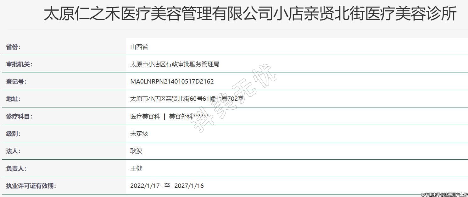 太原仁之禾醫(yī)療美容管理有限公司小店親賢北街醫(yī)療美容診所