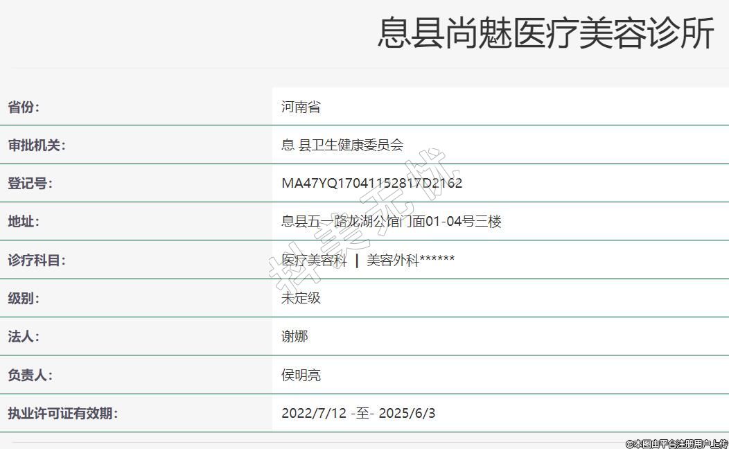 信陽(yáng)尚魅醫(yī)療美容診所,成立于2020年1月7日,位于河南省信陽(yáng)市息縣五一路龍湖公館門(mén)面01-04號(hào)三樓,科室范圍為醫(yī)療美容科美容外科。
