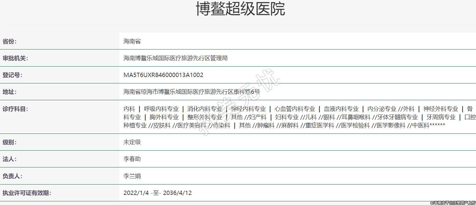 審批機關(guān):海南博鰲樂城國際醫(yī)療旅游先行區(qū)管理局