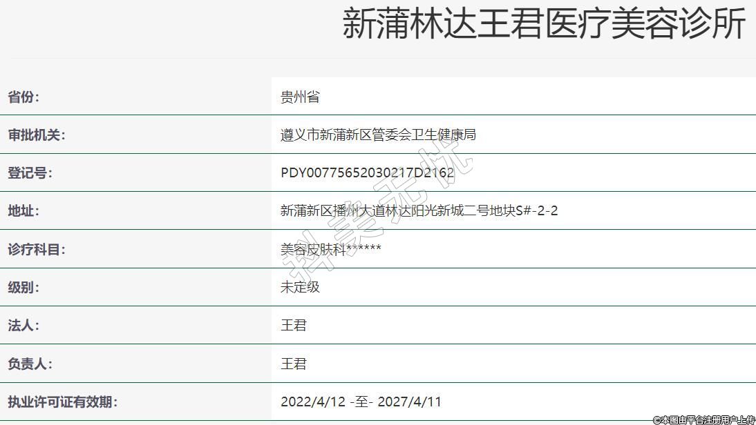 遵義王君醫(yī)療美容地址:新蒲新區(qū)播州大道林達陽光新城二號地塊S#-2-2,診療科目:美容皮膚科******