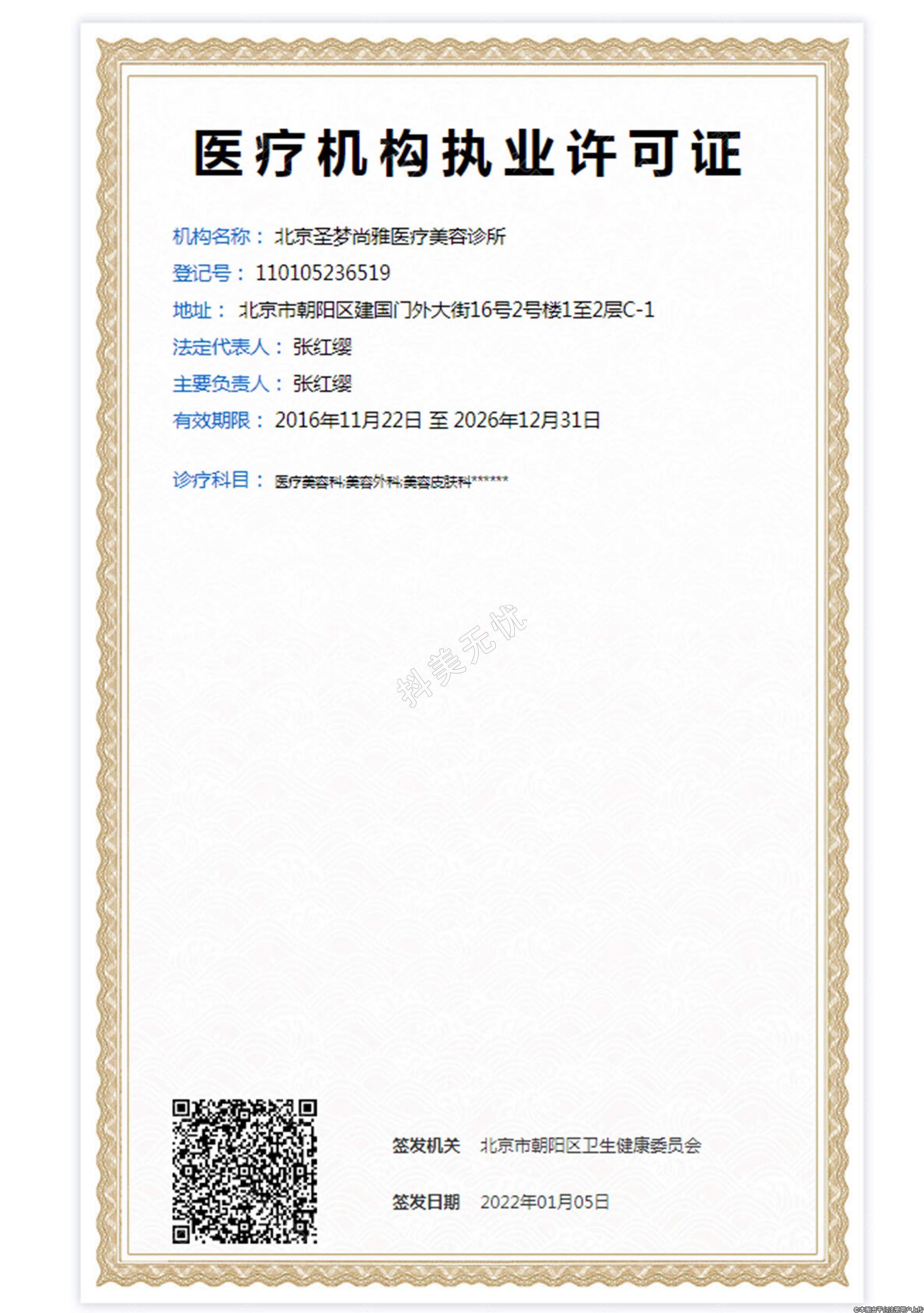 簽發(fā)機關:北京市朝陽區(qū)衛(wèi)生健康委員會