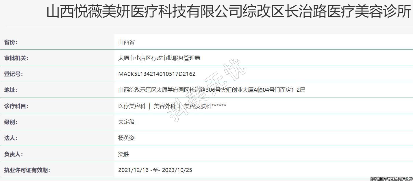 山西悅薇美妍醫(yī)療科技有限公司綜改區(qū)長(zhǎng)治路醫(yī)療美容診所