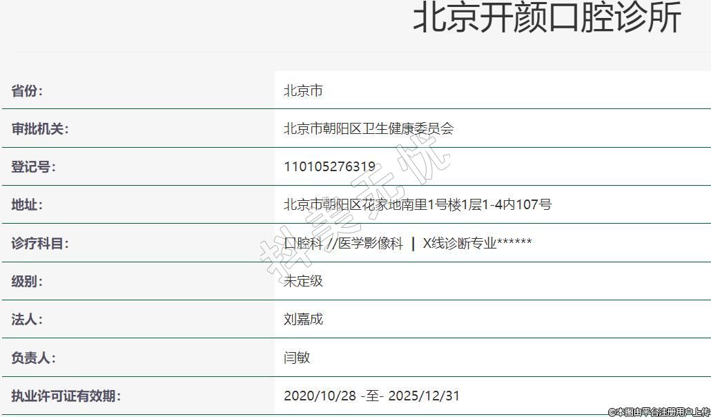 北京開顏口腔2020-07-01成立,地址:北京市朝陽區(qū)花家地南里1號樓1層1-4內(nèi)107號,診療科目:口腔科 //醫(yī)學影像科 | X線診斷專業(yè)******