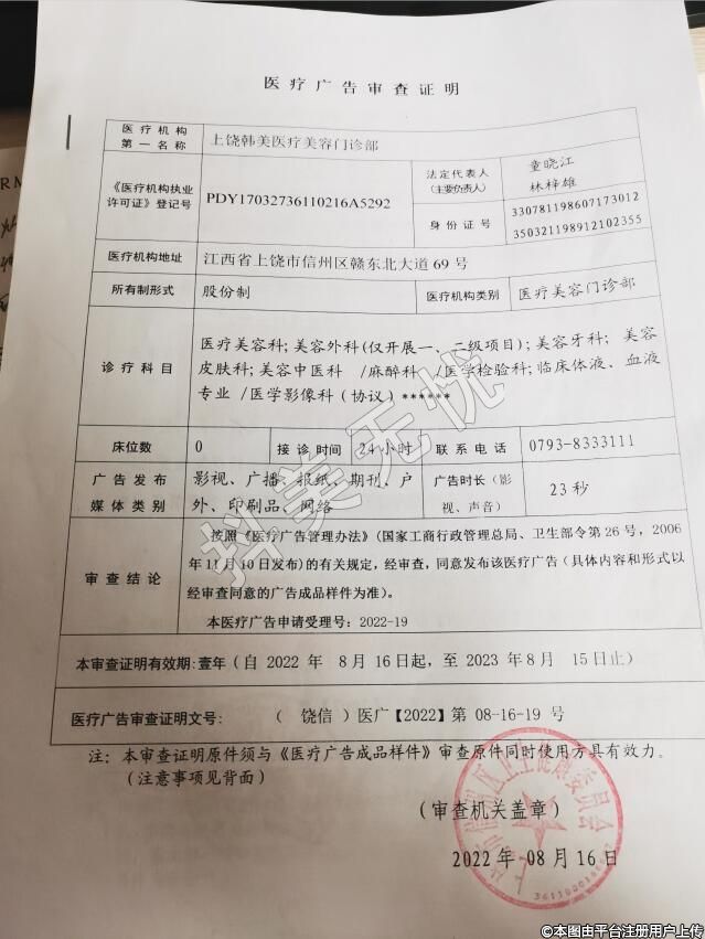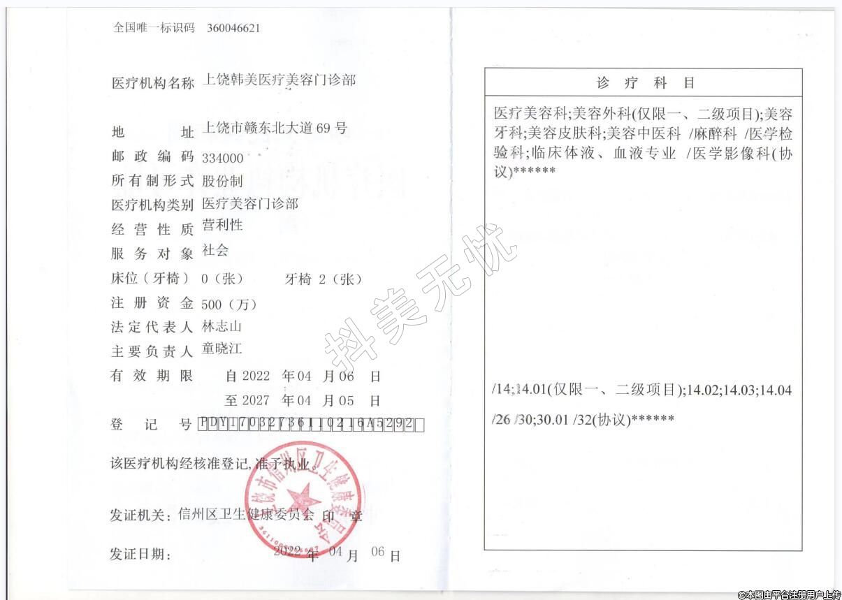 醫(yī)療機(jī)構(gòu)名稱:上饒韓美醫(yī)療美容門診部