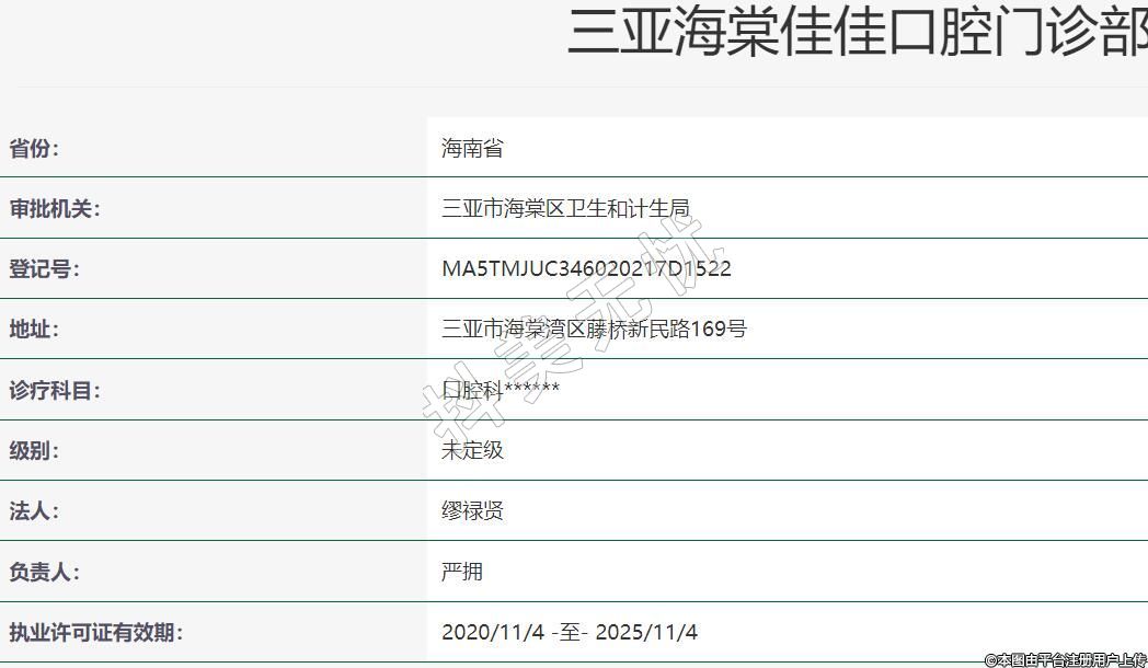 審批機關(guān):三亞市海棠區(qū)衛(wèi)生和計生局
