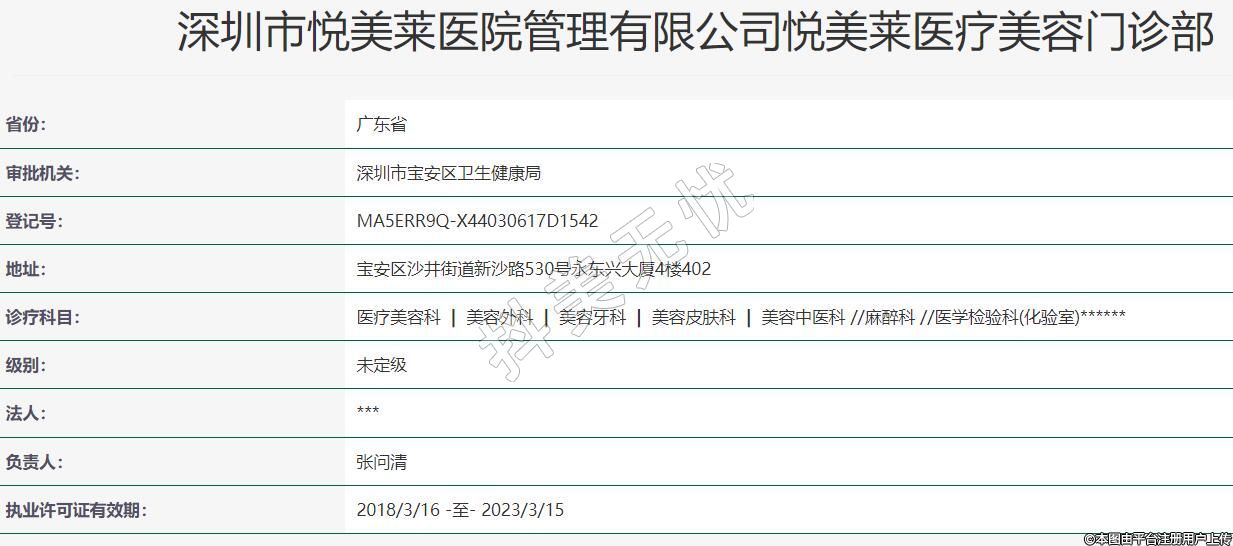 深圳市悅美萊醫(yī)院管理有限公司悅美萊醫(yī)療美容門診部