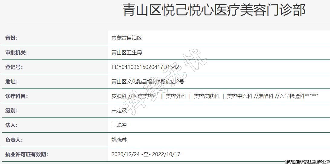 青山區(qū)悅己悅心醫(yī)療美容門診部