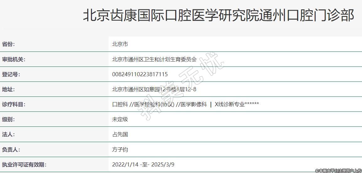 北京齒康國際口腔醫(yī)學研究院通州口腔門診部成立于2013年5月14日,診療科目:口腔科 //醫(yī)學檢驗科(協(xié)議) //醫(yī)學影像科 | X線診斷專業(yè)******