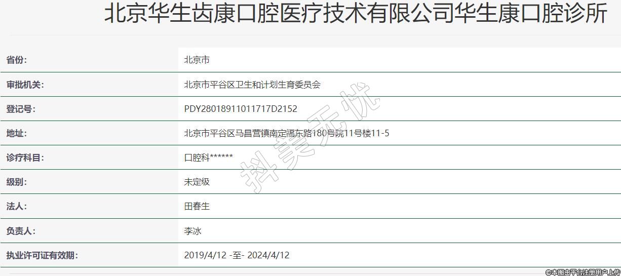 北京華生齒康口腔醫(yī)療技術(shù)有限公司華生康口腔診所