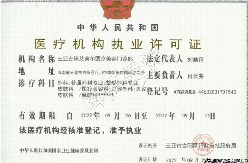 機構名稱:三亞吉陽艾美爾醫(yī)療美容門診部