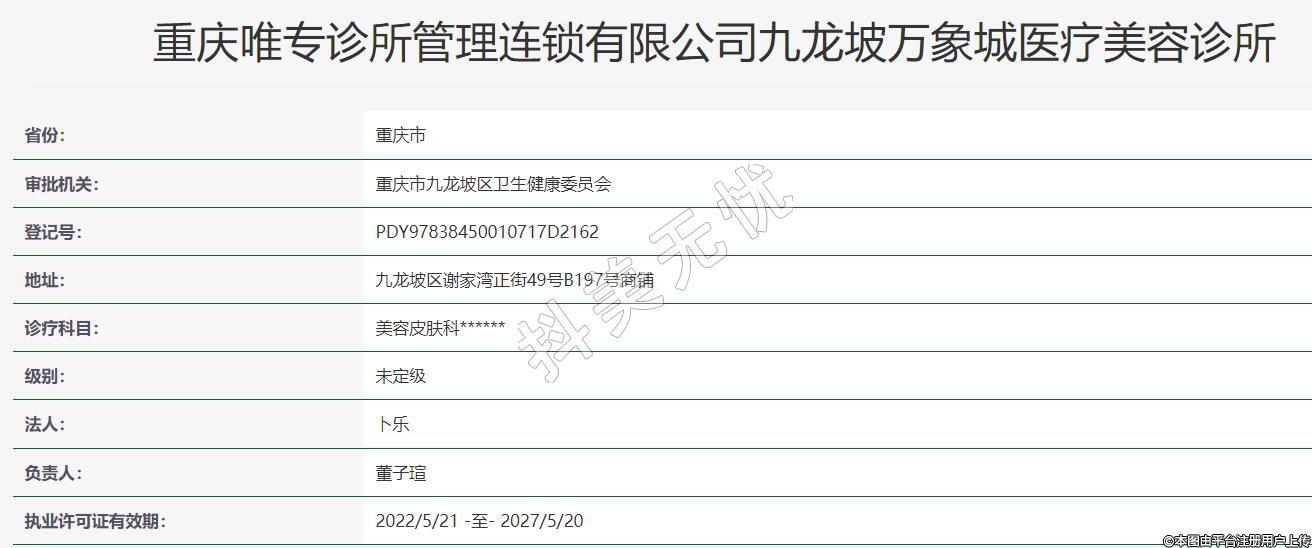 重慶唯專診所管理連鎖有限公司九龍坡萬象城醫(yī)療美容診所