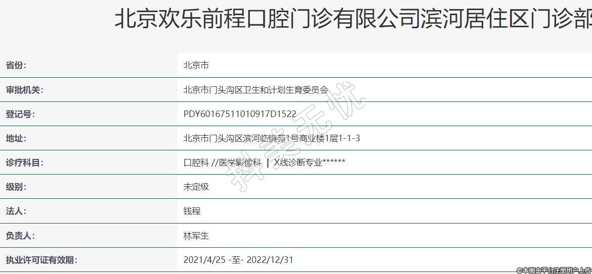 北京歡樂(lè)前程口腔門(mén)診有限公司濱河居住區(qū)門(mén)診部
