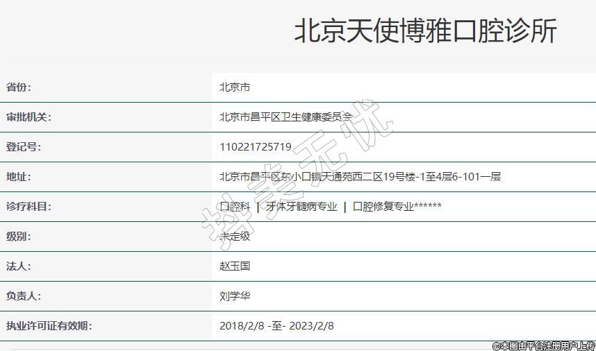 北京天使博雅口腔2017-10-12成立,地址:北京市昌平區(qū)東小口鎮(zhèn)天通苑西二區(qū)19號樓-1至4層6-101一層,診療科目:口腔科 | 牙體牙髓病專業(yè) | 口腔修復(fù)專業(yè)******