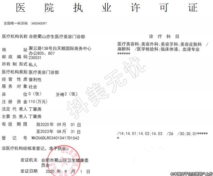 醫(yī)療機(jī)構(gòu)名稱(chēng):合肥蜀山亦生醫(yī)療美容門(mén)診部