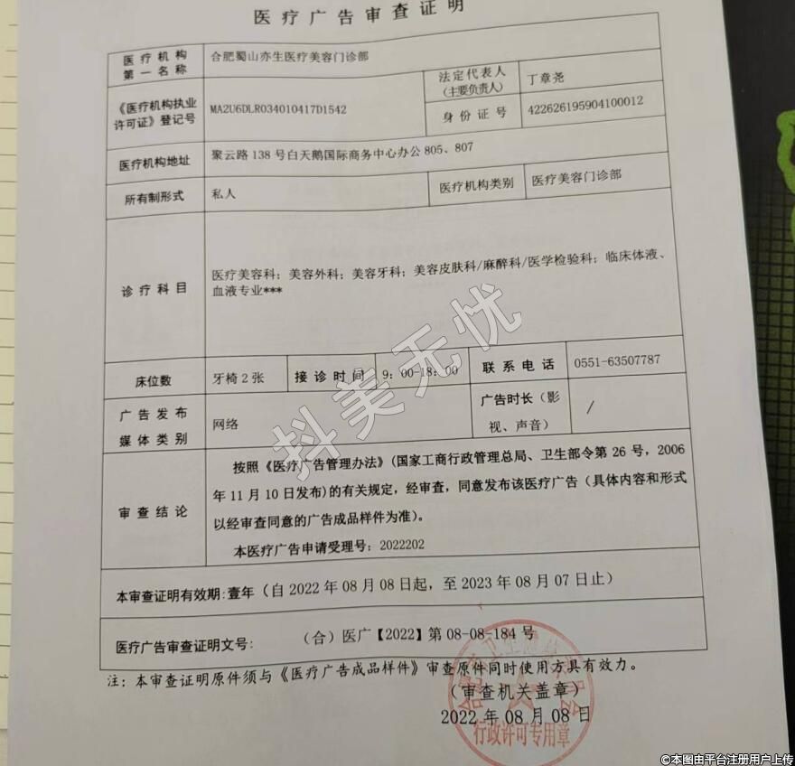 發(fā)證機(jī)關(guān):合肥市蜀山區(qū)衛(wèi)生健康委員會(huì)