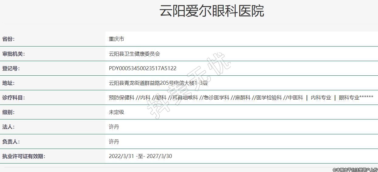 云陽愛爾眼科2016-04-12成立,地址:云陽縣青龍街道群益路205號電信大樓1-3層,診療科目:預(yù)防保健科 //內(nèi)科 //眼科 //耳鼻咽喉科 //急診醫(yī)學(xué)科 //麻醉科 //醫(yī)學(xué)檢驗科 //中醫(yī)科 | 內(nèi)科專業(yè) | 眼科專業(yè)******