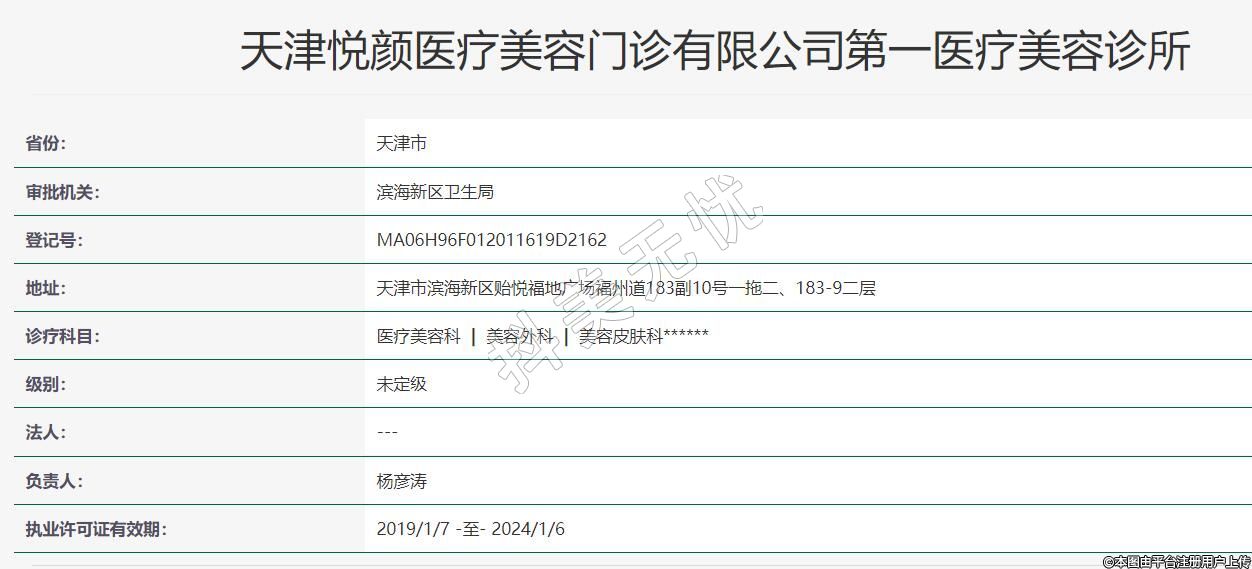 天津悅顏醫(yī)療美容門診有限公司第一醫(yī)療美容診所