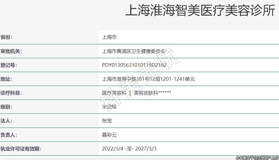 上?;春V敲泪t(yī)療美容2021-09-16成立,地址:上海市淮海中路381號12層1201-1241單元,診療科目:醫(yī)療美容科 | 美容皮膚科******