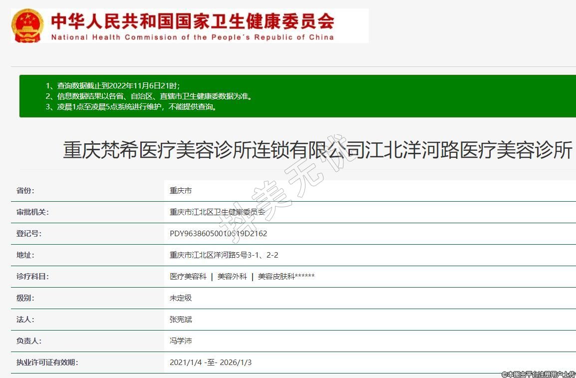 重慶梵希醫(yī)療美容診所連鎖有限公司江北洋河路醫(yī)療美容診所