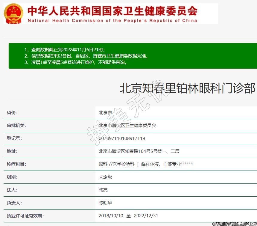 北京知春里鉑林眼科2018-05-21成立,地址:北京市海淀區(qū)知春路104號5號樓一、二層,診療科目:眼科 //醫(yī)學(xué)檢驗科 | 臨床體液、血液專業(yè)******