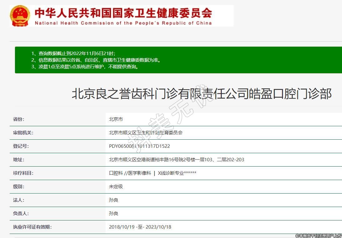 北京良之譽齒科門診有限責(zé)任公司皓盈口腔門診部