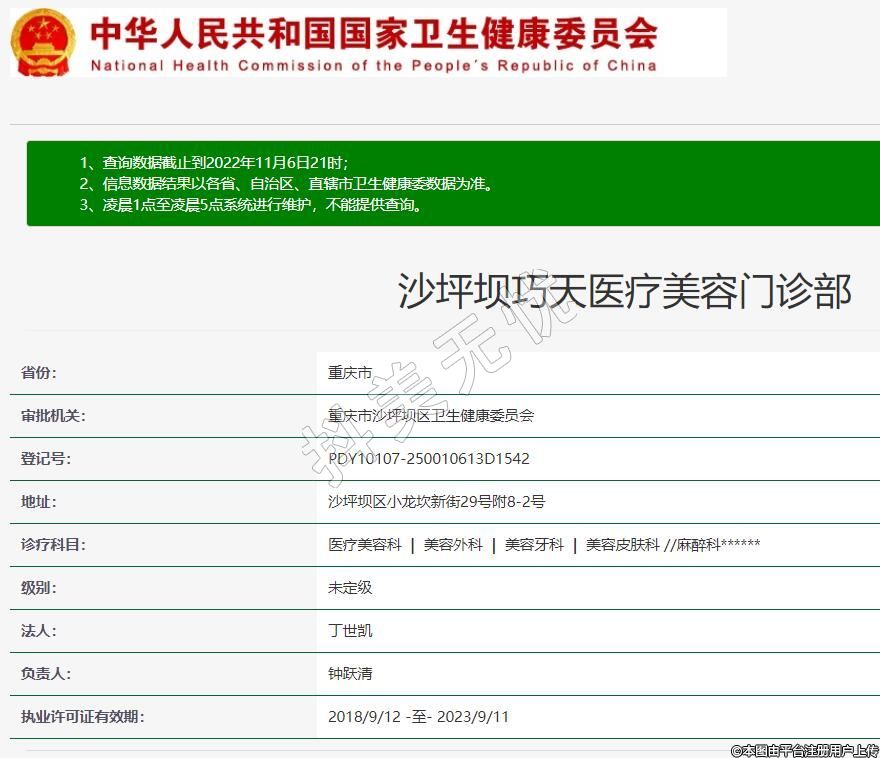 審批機關:重慶市沙坪壩區(qū)衛(wèi)生健康委員會