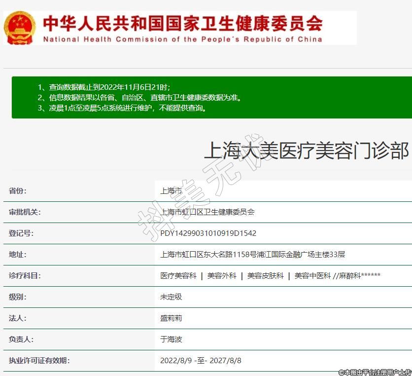 上海大美醫(yī)療美容2021-12-07成立,地址:上海市虹口區(qū)東大名路1158號浦江國際金融廣場主樓33層,診療科目:醫(yī)療美容科 | 美容外科 | 美容皮膚科 | 美容中醫(yī)科 //麻醉科******