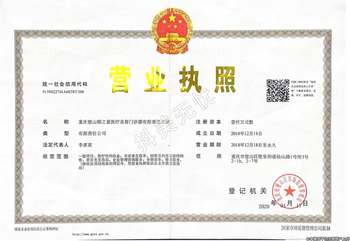 重慶璧山蝶之星醫(yī)療美容門(mén)診部有限責(zé)任公司