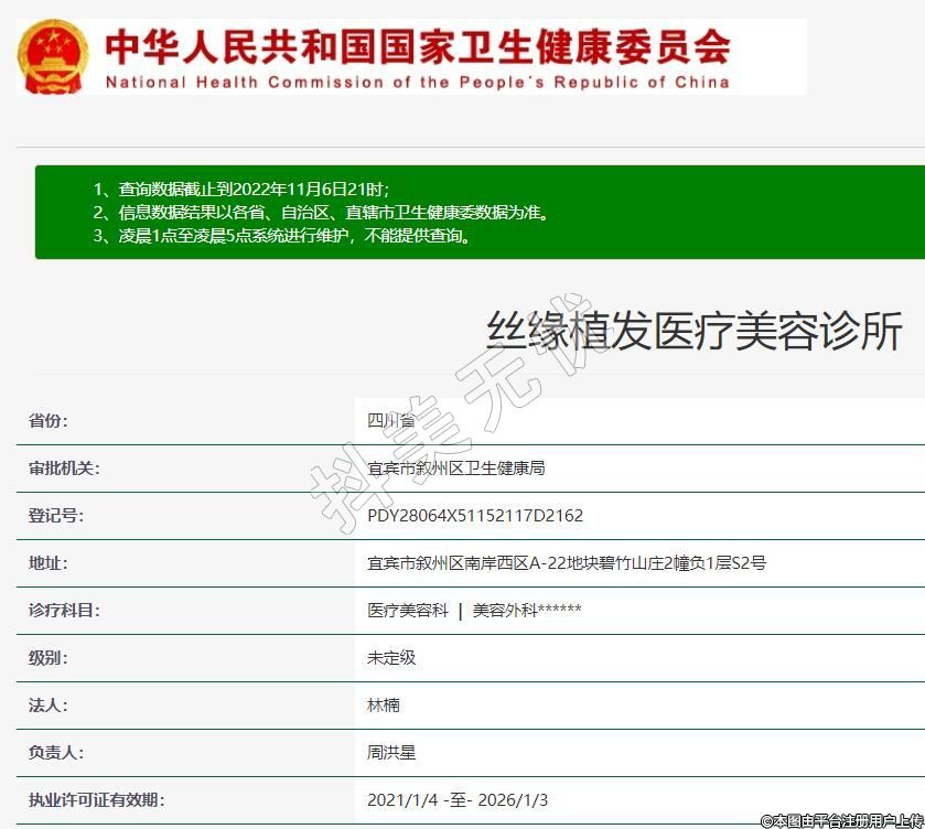 宜賓絲緣植發(fā)醫(yī)療美容2020-11-03成立,地址:宜賓市敘州區(qū)南岸西區(qū)A-22地塊碧竹山莊2幢負(fù)1層S2號,診療科目:醫(yī)療美容科 | 美容外科******