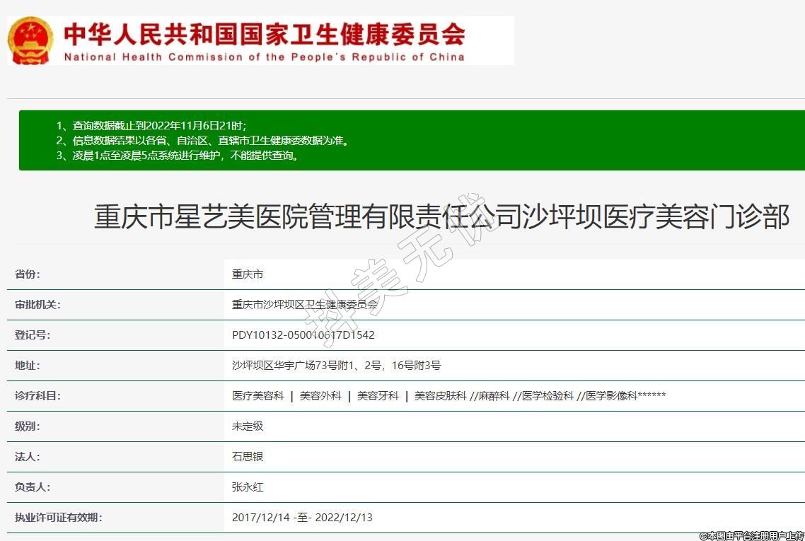 重慶市星藝美醫(yī)院管理有限責任公司沙坪壩醫(yī)療美容門診部