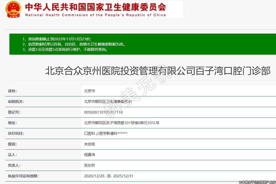 北京合眾京州醫(yī)院投資管理有限公司百子灣口腔門診部