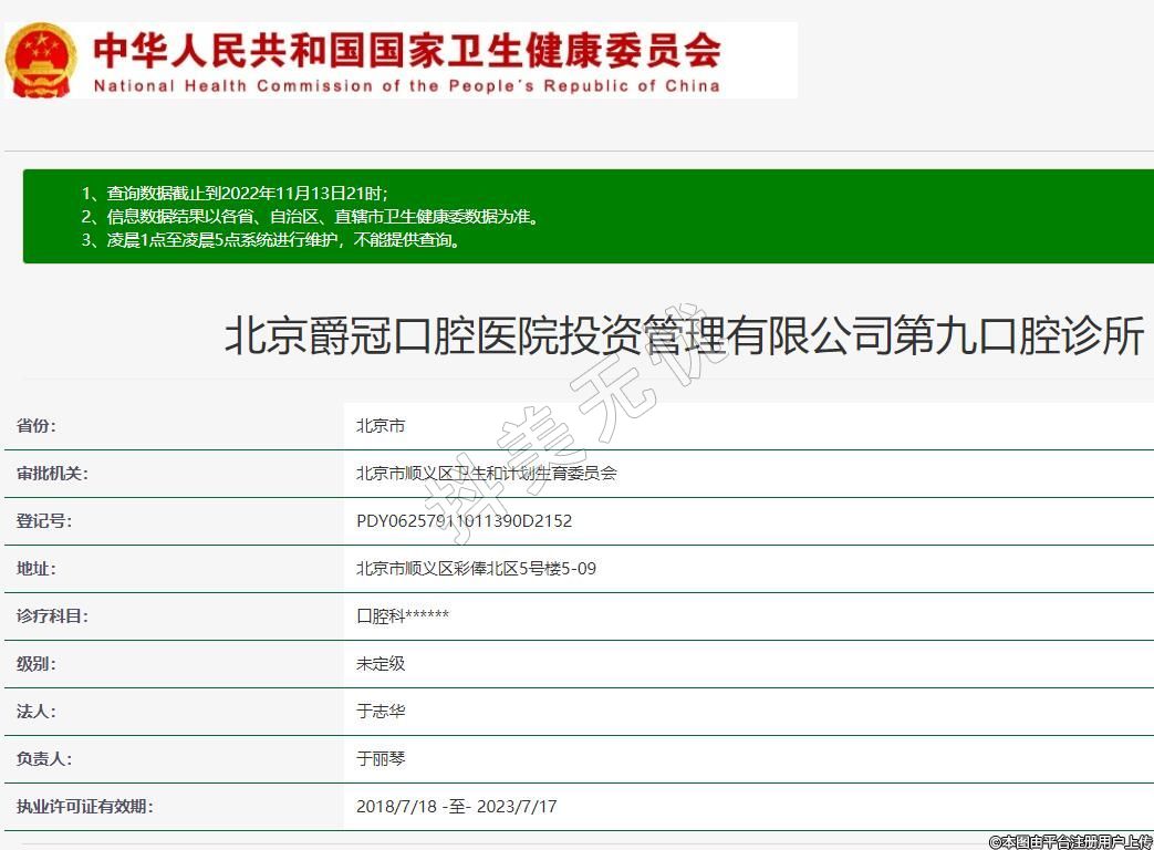 北京爵冠口腔醫(yī)院投資管理有限公司第九口腔診所