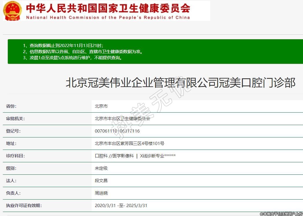 北京冠美偉業(yè)企業(yè)管理有限公司冠美口腔門診部