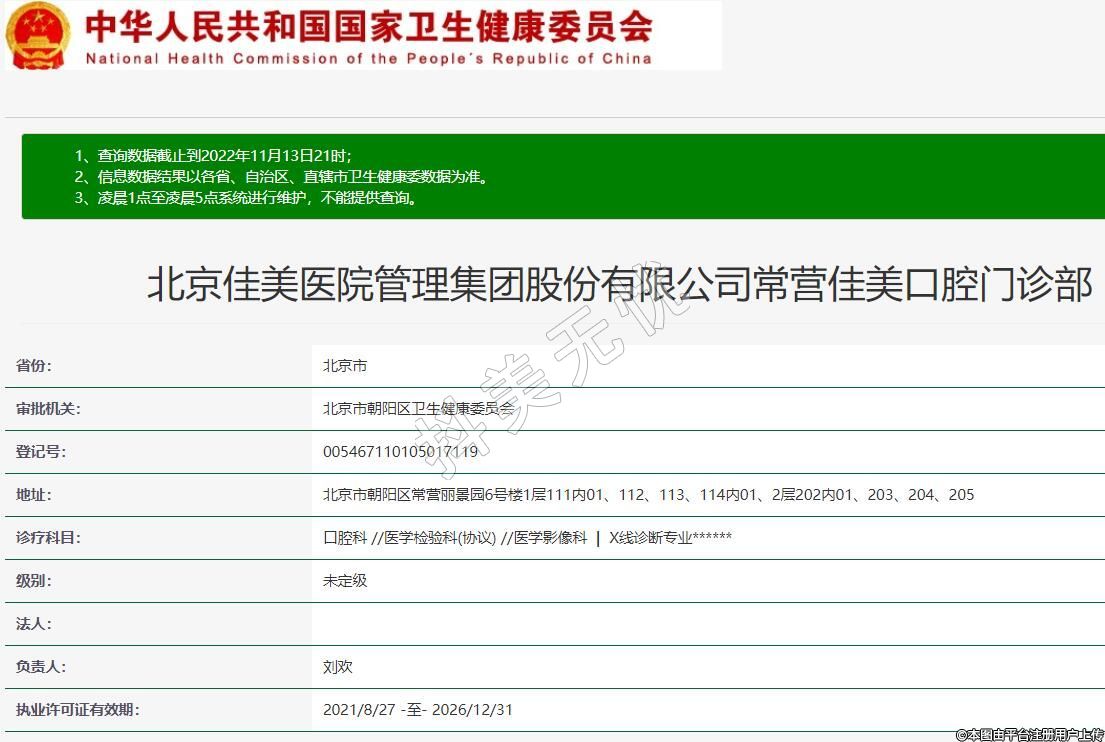 北京佳美醫(yī)院管理集團股份有限公司常營佳美口腔門診部