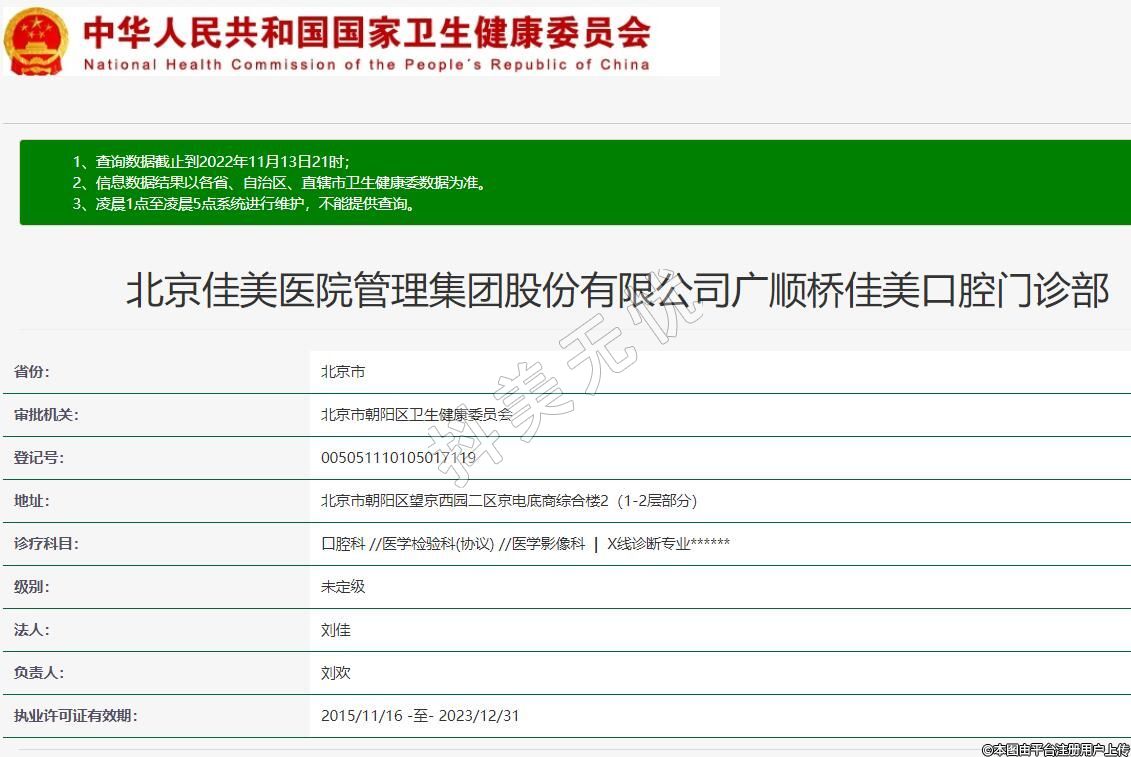 北京佳美醫(yī)院管理集團(tuán)股份有限公司廣順橋佳美口腔門診部