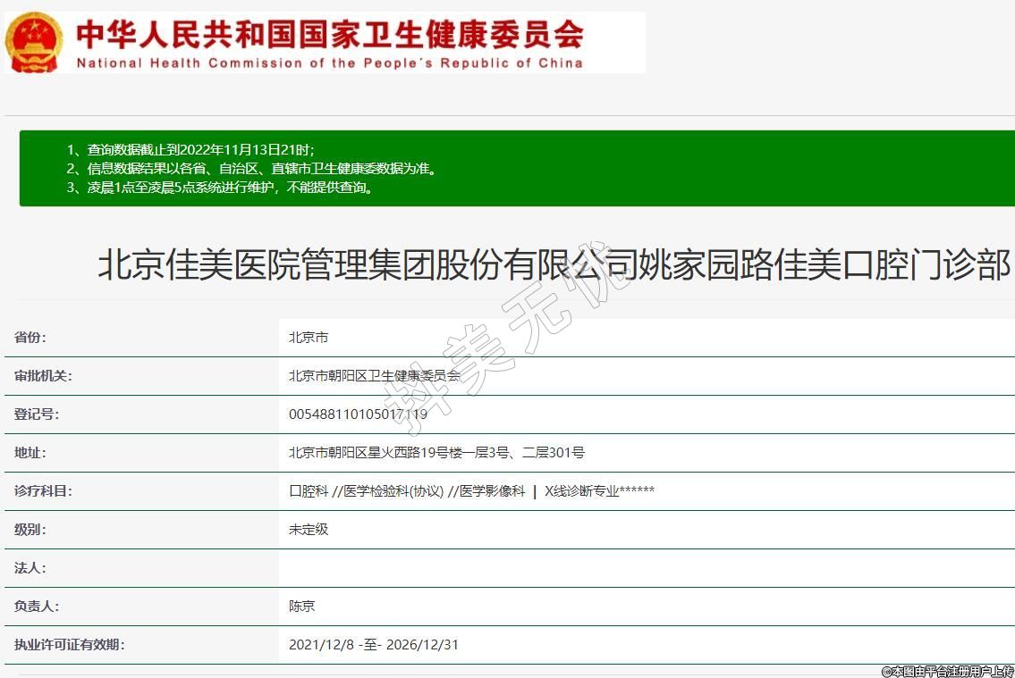 北京佳美醫(yī)院管理集團(tuán)股份有限公司姚家園路佳美口腔門診部