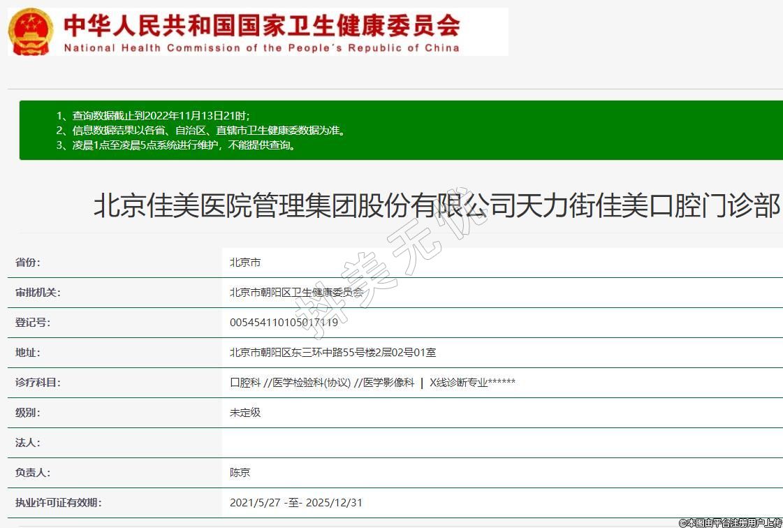 北京佳美醫(yī)院管理集團股份有限公司天力街佳美口腔門診部