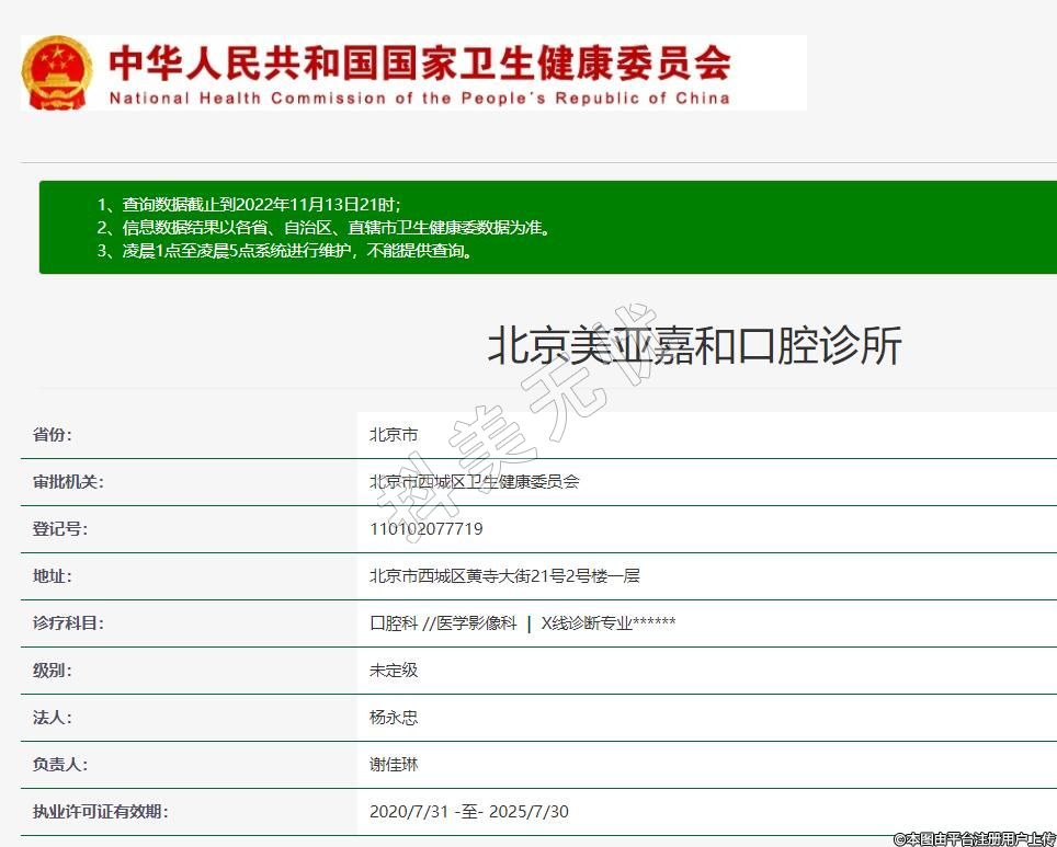 北京嘉和口腔(黃寺分院)2002-11-25成立,地址:北京市西城區(qū)黃寺大街21號2號樓一層,診療科目:口腔科 //醫(yī)學影像科 | X線診斷專業(yè)******