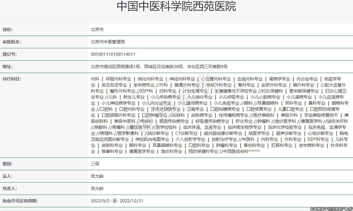 中國中醫(yī)科學院西苑醫(yī)院