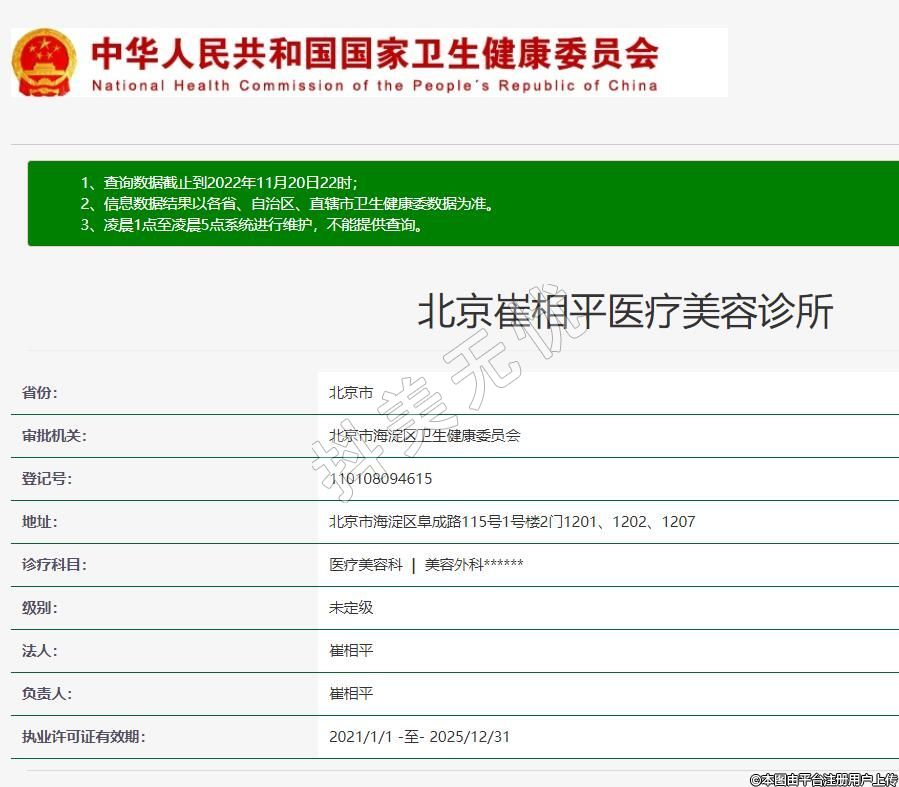 北京崔相平醫(yī)療美容診所是由北京市衛(wèi)健部門正式批準(zhǔn)的醫(yī)療美容機(jī)構(gòu)。開設(shè)美容外科、美容皮膚科、美容醫(yī)療應(yīng)用技術(shù)三大科室,每個科室都能做到“專”而“精”。