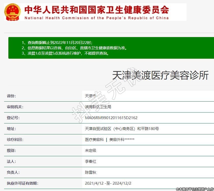 天津美渡醫(yī)療美容2019-08-21成立,地址:天津自貿(mào)試驗(yàn)區(qū)(中心商務(wù)區(qū))和平路180號,診療科目:醫(yī)療美容科 | 美容外科******