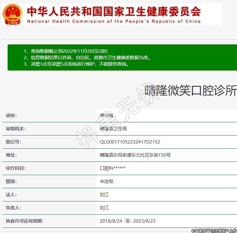晴隆微笑口腔地址:晴隆縣東觀街道東北社區(qū)東街150號,診療科目:口腔科******