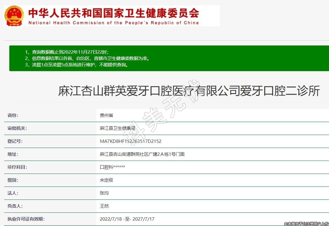 麻江杏山群英愛牙口腔醫(yī)療有限公司愛牙口腔二診所