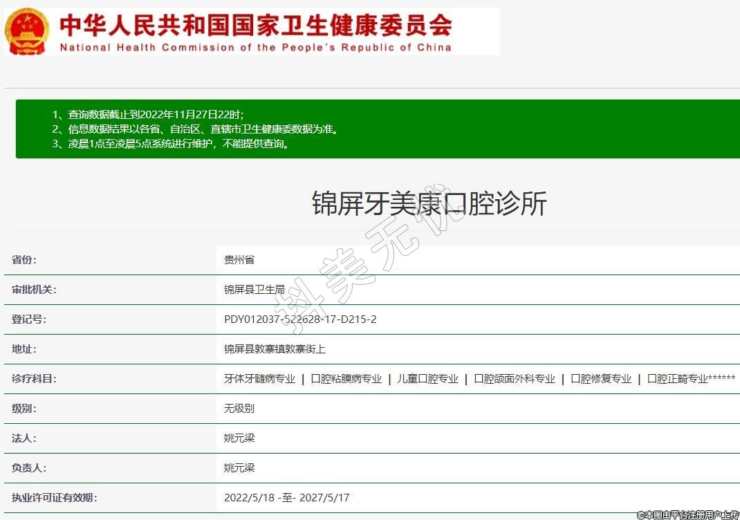 錦屏牙美康口腔2021-12-23成立,地址:錦屏縣敦寨鎮(zhèn)敦寨街上,診療科目:牙體牙髓病專業(yè) | 口腔粘膜病專業(yè) | 兒童口腔專業(yè) | 口腔頜面外科專業(yè) | 口腔修復專業(yè) | 口腔正畸專業(yè)******