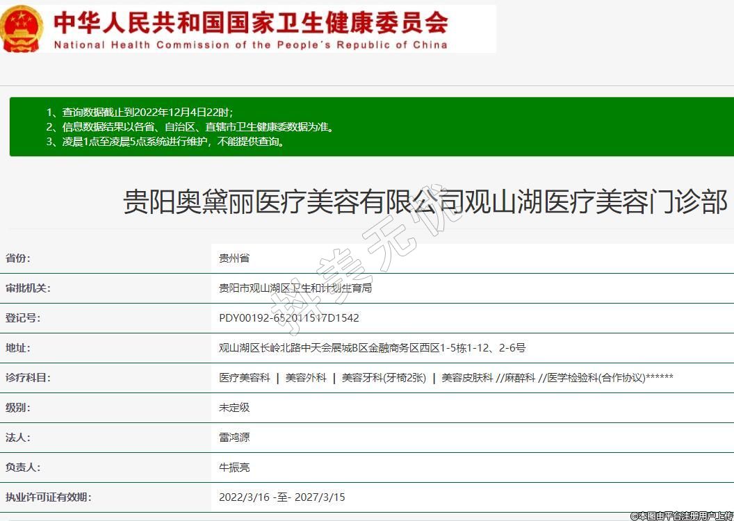 貴陽奧黛麗醫(yī)療美容有限公司觀山湖醫(yī)療美容門診部
