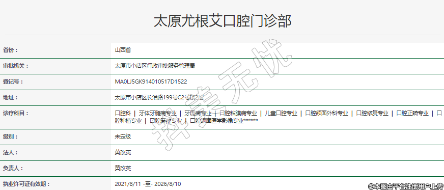 執(zhí)業(yè)許可證有效期:2021/8/11 -至- 2026/8/10