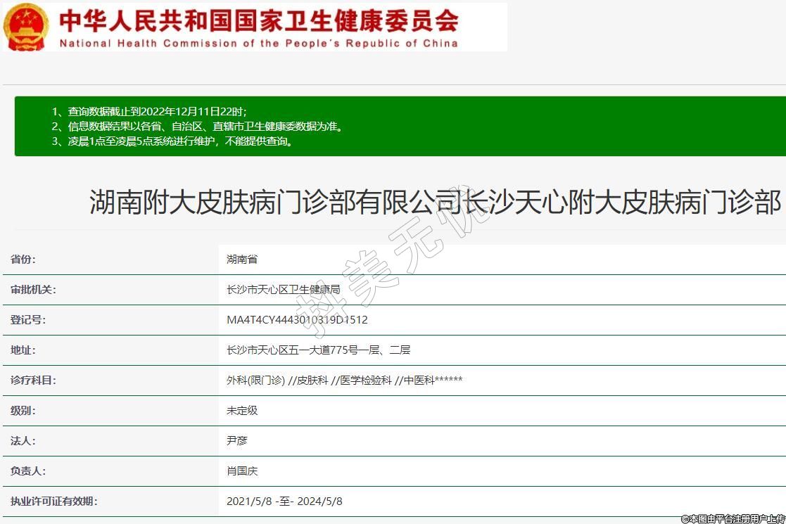 湖南附大皮膚病門診部有限公司長(zhǎng)沙天心附大皮膚病門診部