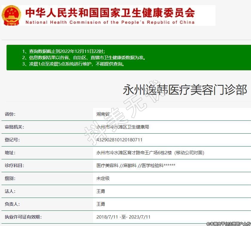 永州逸韓醫(yī)療美容,診療科目:醫(yī)療美容科 //麻醉科 //醫(yī)學(xué)檢驗科******