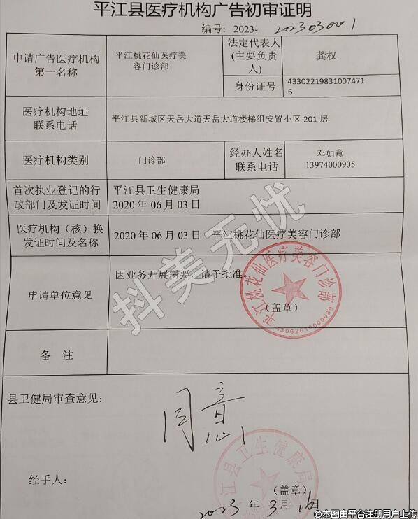 機(jī)構(gòu)名稱(chēng):平江桃花仙醫(yī)療美容門(mén)診部