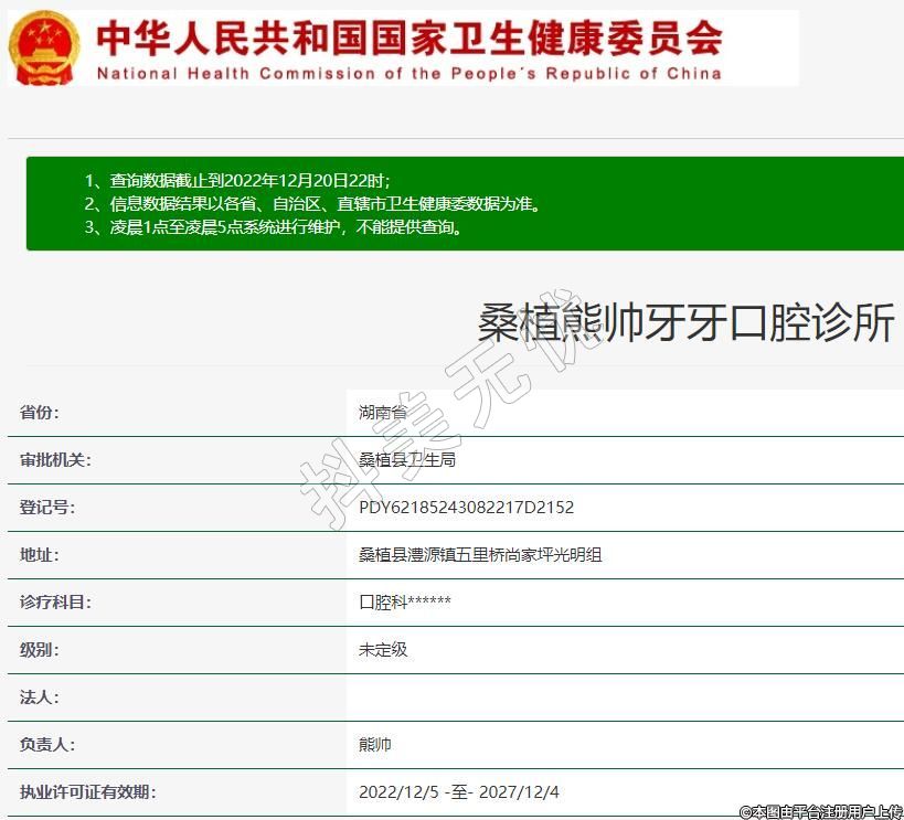 桑植熊帥牙牙口腔診所,診療科目:口腔科******
